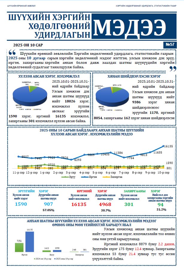 “ХЭРГИЙН ХӨДӨЛГӨӨНИЙ УДИРДЛАГЫН МЭДЭЭ” СОНИНЫ 57 ДАХЬ ДУГААР ГАРЛАА