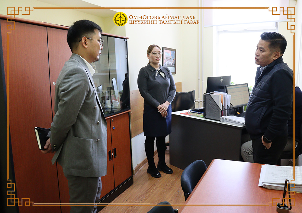 Шүүхийн Ерөнхий Зөвлөлийн гишүүн М.Мөнхдаваа 2025 оны 12 дугаар сарын 03-ны өдөр Өмнөговь аймаг дахь анхан болон давж заалдах шатны шүүх, шүүхийн Тамгын газарт ажиллалаа.