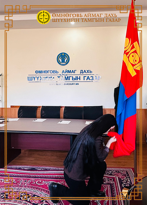 Төрийн сүлдэндээ мөргөн, тангаргаа өргөсөн шүүхийн захиргааны ажилтан нарт Өмнөговь аймаг дахь анхан болон давж заалдах шатны шүүхийн шүүгч, шүүхийн захиргааны ажилтнууд баяр хүргэн, ажилд нь амжилт хүслээ.