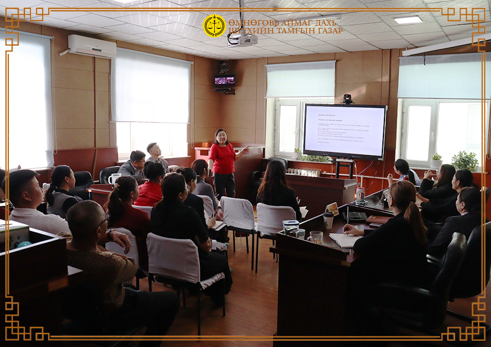 Шүүхийн Тамгын газрын 2025 оны “Дотоодын сургалтын төлөвлөгөө”-ний дагуу “Монгол хэлний найруулга зүй, албан хэрэг хөтлөлт, шүүхийн баримт бичиг боловсруулах нь” сэдэвт сургалтыг 2025 оны 11 дүгээр сарын 25-ны өдөр шүүх хуралдааны “Б” танхимд амжилттай зохион байгуулав.