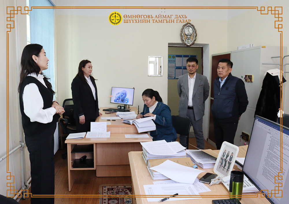 Шүүхийн Ерөнхий Зөвлөлийн гишүүн М.Мөнхдаваа 2025 оны 12 дугаар сарын 03-ны өдөр Өмнөговь аймаг дахь анхан болон давж заалдах шатны шүүх, шүүхийн Тамгын газарт ажиллалаа.