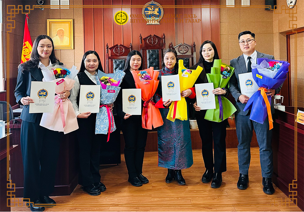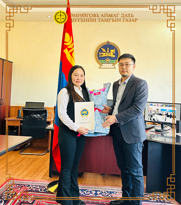 Төрийн сүлдэндээ мөргөн, тангаргаа өргөсөн шүүхийн захиргааны ажилтан нарт Өмнөговь аймаг дахь анхан болон давж заалдах шатны шүүхийн шүүгч, шүүхийн захиргааны ажилтнууд баяр хүргэн, ажилд нь амжилт хүслээ.