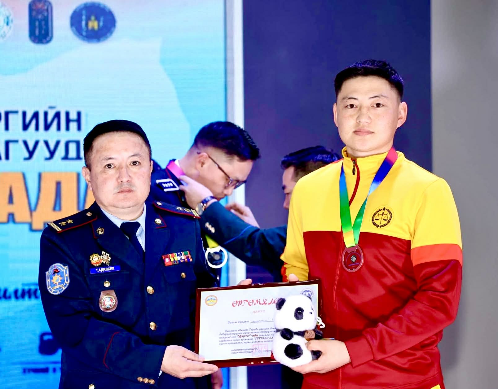 Монгол Цэргийн өдрийг тохиолдуулан 38 дахь жилдээ зохион байгуулагдсан Төрийн цэргийн болон хууль сахиулах байгууллагуудын албан хаагчдын “Спортын бага наадам”-д шүүгчийн туслах Г.Бямбажав нь дартсын эрэгтэй ганцаарчилсан төрөлд амжилттай оролцож, гутгаар байр эзэлж өргөмжлөл, медаль, дурсгалын зүйлээр шагнуулав.